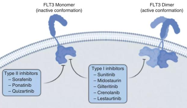 奎扎替尼和吉瑞替尼的区别在哪 1、作用机制:两者都作用于FLT3(FMS样酪氨酸激酶3),这是一种在急性髓系白血病(AML)中常见的突变基因。奎扎替尼通过抑制FLT3-ITD(内部串联重复)突变的活性来阻止白血病细胞的生长。而吉瑞替尼是一种小分子,可以抑制多受体酪氨酸激酶,包括FLT3,对FLT3野生型和FLT3突变体(ITD和TKD)均表现出抑制作用。 2、疗效和适应症:奎扎替尼已被证实可以有效治疗FLT3-ITD突变阳性的急性髓系白血病。临床试验结果显示,奎扎替尼可以显著提高患者的生存率和无疾病进展生存期,同时…